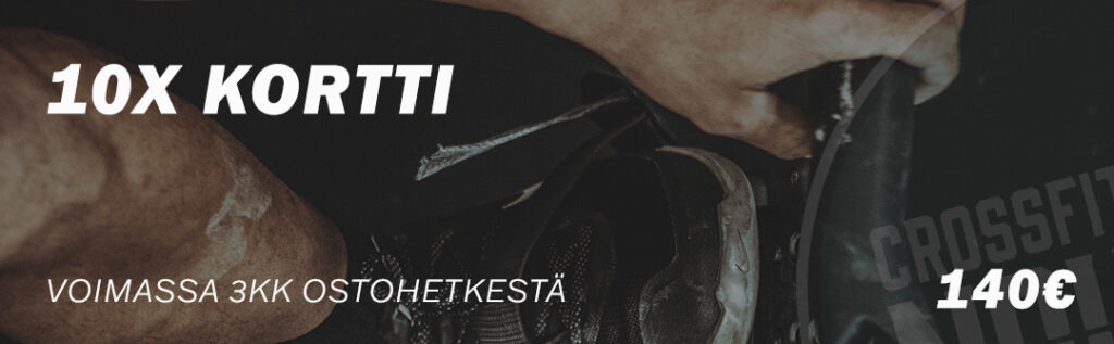 Jos pääset vain harvoin treenaamaan, tai et muuten pysty sitoutumaan, voi oikea vaihtoehto sinulle olla esim 10x kortti. 10x kortilla voit osallistua kaikille tunneille, mukaan lukien jooga ja mobility. Mukana myös kertakortti, jolla pääset vierailemaan Crossfit Nousussa.