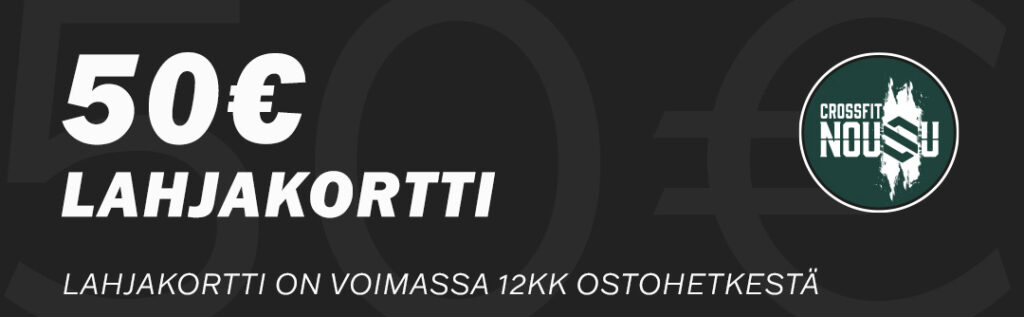 Lahjakortin voi hyödyntää koko arvoltaan mihin tahansa palveluun CrossFit Nousussa (poislukien hieronta ja fysioterapia)